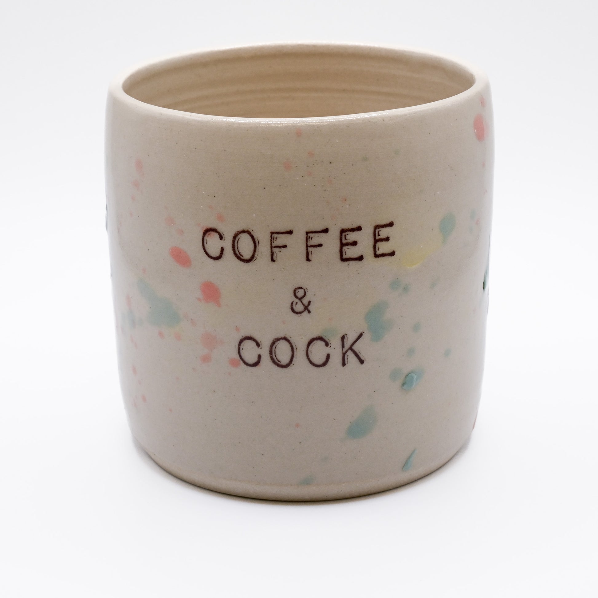 Playful Design: Featuring the bold "COFFEE & COCK" text, each mug is hand-printed, making every piece one of a kind.