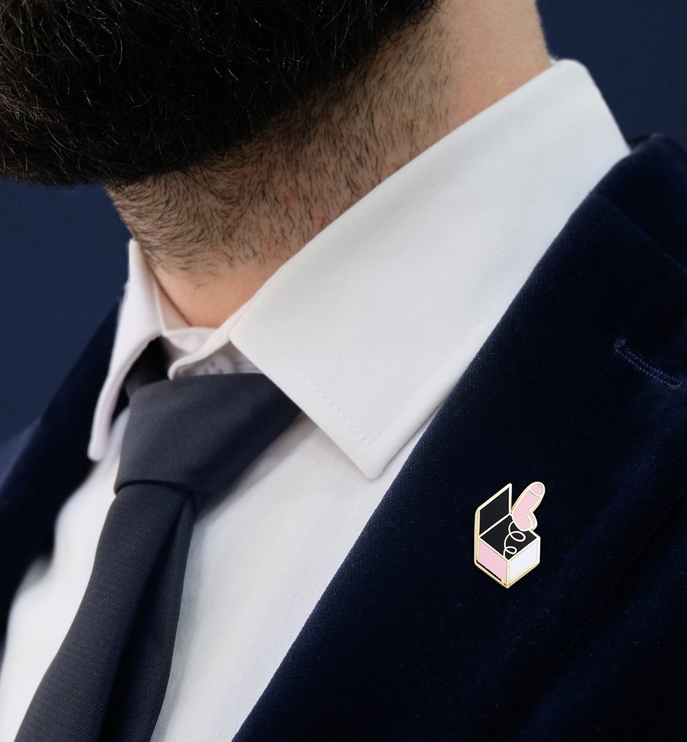 Mix and match: Combine with other cheeky pins from the collection for a standout style.