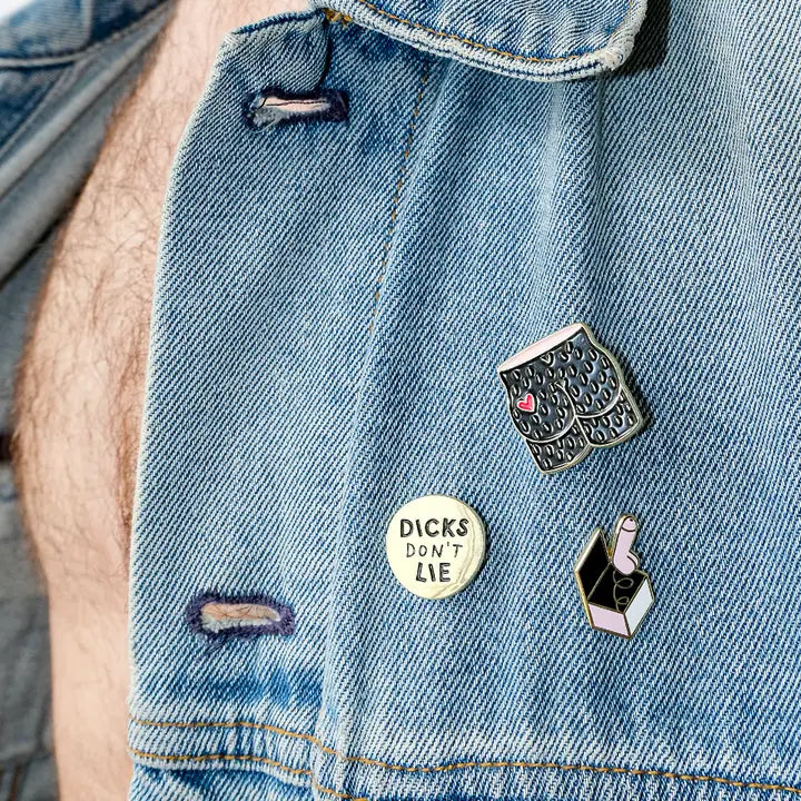 Add a playful twist to your look with the Pin - Dick in a Box from Dicks Don’t Lie. Whether you’re dressing up for work or heading out for fun, this cheeky pin is ideal for those who enjoy a light-hearted approach to fashion. Its unique design is sure to catch eyes and start conversations, making it a standout addition to any collection.